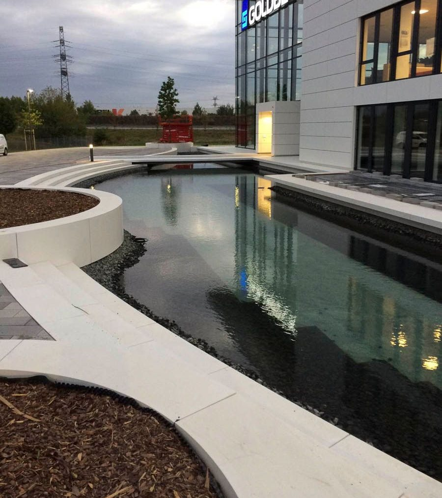 Die Büroräume bilden dabei den Rücken der großen Halle und erhalten durch die zentrale Treppe eine gemeinsame Mitte. Dabei wird das gesamte Erdgeschoss für allgemeine Funktionen genutzt. Der Verwaltungsbereich trifft im Erdgeschoss auf den Seminarbereich. Dieser kann bei Veranstaltungen auf die Ausstellungshalle ausgeweitet werden.