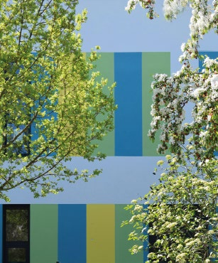 Die Kita Seepferdchen ist das 1. Haus mit integriertem Schwimmbad. Das gesamte Haus wurde mit einer Funktionsüberlagerung im Bereich Physiotherapie, Sport und Tanz konzipiert. Diese multifunktionale Auslegung führt dazu, dass die Kinder tagesfertig abgeholt werden können. Das heißt, die meisten zusätzlichen Angebote können von der Einrichtung direkt angeboten werden. Diese Aufstellung bedeutet für die Eltern eine große Erleichterung und schafft zeitlich freie Familienräume. Das Objekt selbst liegt im sich dynamisch entwickelnden Westen von Leipzig. Das Haus rahmt farblich den benachbarten Stadtteilpark.